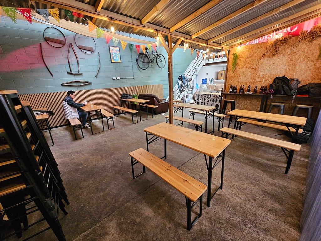 After a few pints were sampled, we all gathered in the tap room where Hans, the owner, generously took the time to walk us through his setup and brewing operations. Having been open since 2016, it’s clear the process is well honed. Given the modest size of the brewhouse — just 700 litres — the system they’ve developed to scale up production is impressively clever.